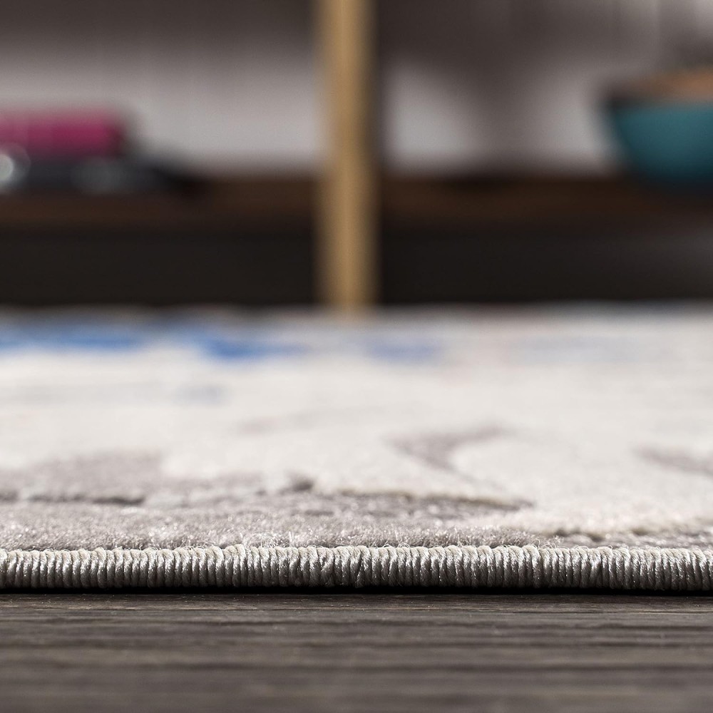 - STAIN-RESISTANT AND PET-FRIENDLY: This rug is made from synthetic fibers that resist UV fading; The pet-friendly low-pile construction won’t accumulate dirt, and spills clean up easily; It’s been machine-woven so the rug fibers will stay put